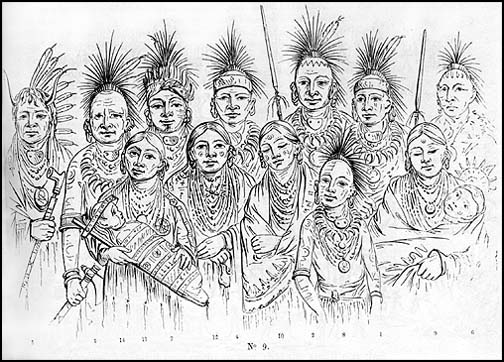 Above. 1844 engraving of the Ioways when they were in London with George Catlin. From Martha Royce Blaine's "The Ioway Indians". Reproduced from W. H. Miner: "The Iowa" (Cedar Rapids, The Torch Press, 1911), Courtesy of Kansas State Historical Society.