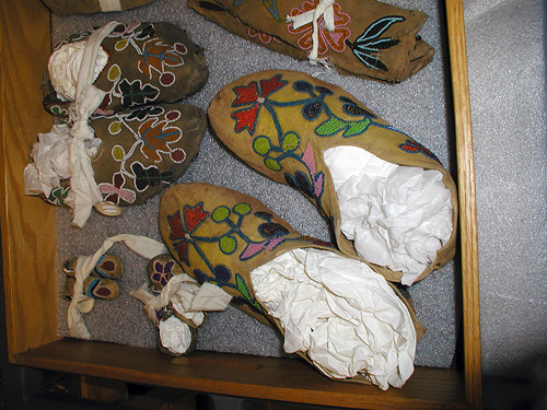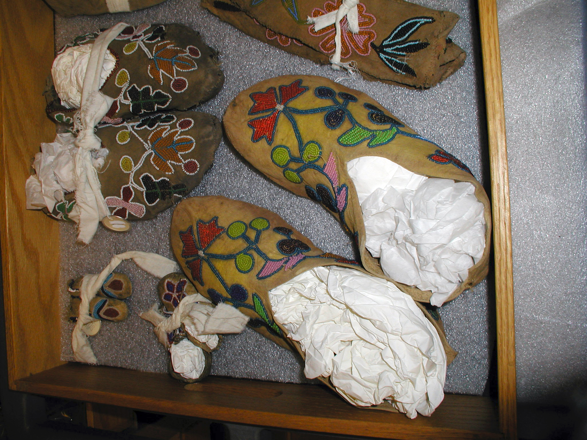 Top two photos: These are some of the moccasins in the collection of the Milwaukee Public Museum, detailed information is in Alanson Skinner's "Ethnology of the Ioway Indians".